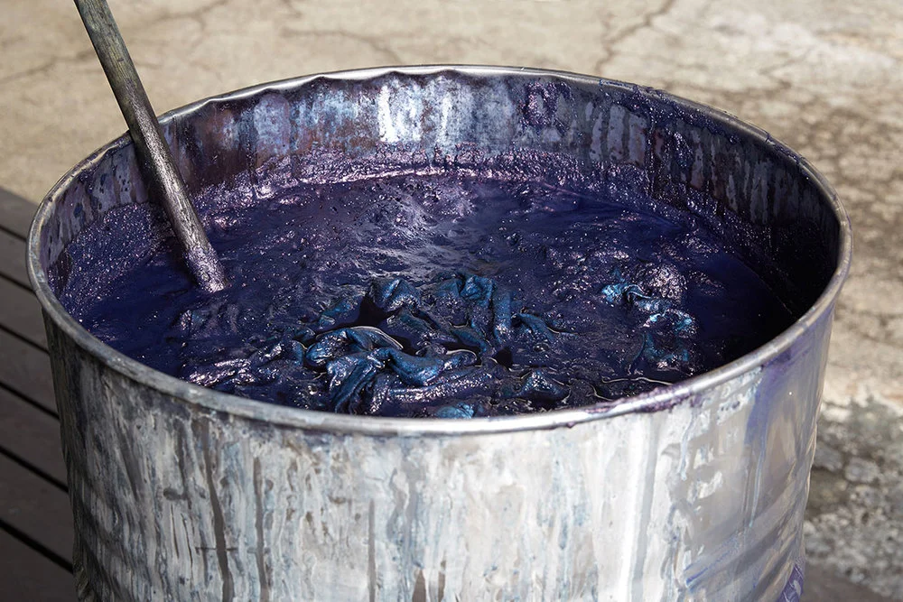 We provide a range of Indigo vat dying techniques, ranging from garment dye, panel dying, to shibori techniques.